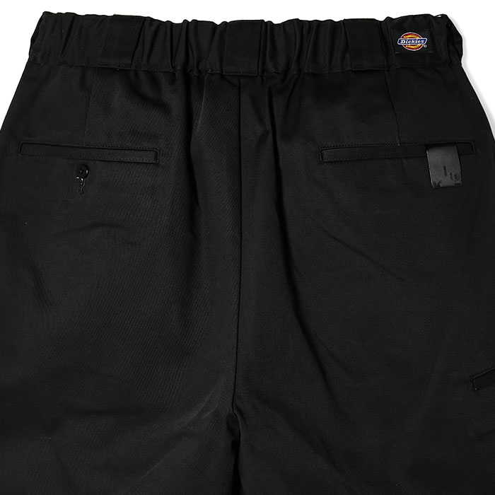 ・フロントはホックを採用。裏面のロック始末には、当時使用されていたホワイト糸を採用。スレーキには今回のコラボレーション用ネーム「2261 Relax Fit」をプリント。ウエストには平ゴムを内蔵するほか、ドローコードを配し細やかなフィット感の調節可能。右太腿裏のハンマーポケットには、Dickiesロゴを生地と同色糸でエンブロイド、ウエストにはタグを配置。BLACKを除くカラーには配色ステッチを施し、奥行きのある表情に。